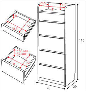 引き出し4杯付きで片付け場所に困りがちな衣類や小物等をたっぷり収納できるチェストです。お部屋の片付けを自分で出来るよぷにしつけましょう。